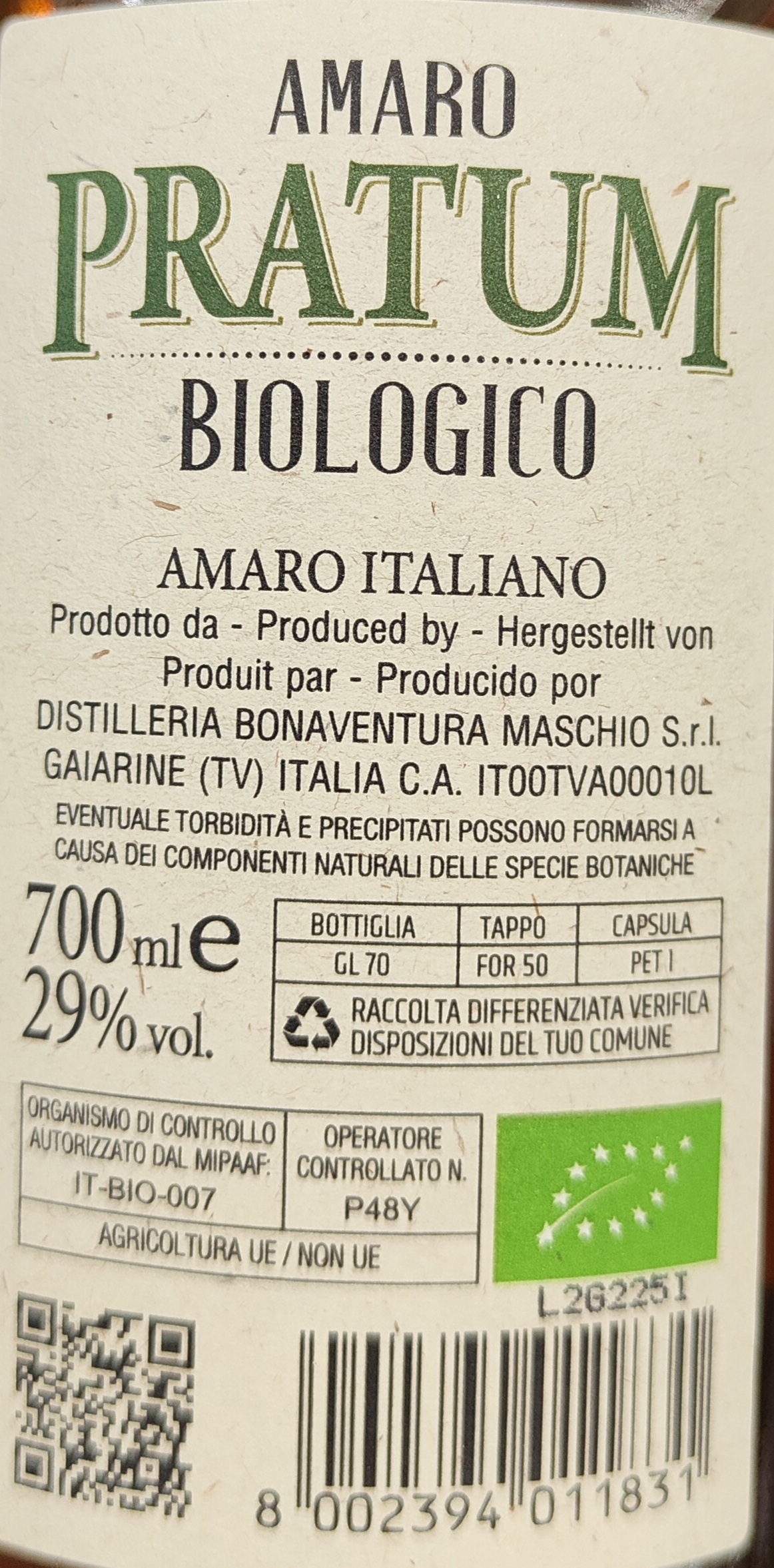 AMARO BIOLOGICO CERTIFICATO.